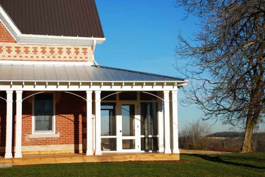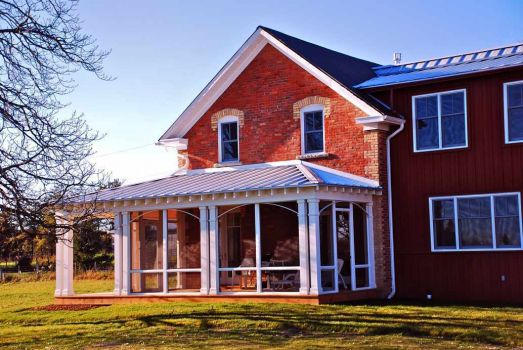 To begin with we looked at retaining the sturdiest of the interior finishes. The 12-inch pine floor planks were preserved and additional flooring milled from salvaged barn siding. The former porch, demolished many years ago, was rebuilt using templates from the Caledon vernacular, and we added a generous screened porch that opens from the dining room. Wrapping three sides, the porch protects the interior from the direct rays of the summer sun.