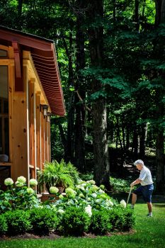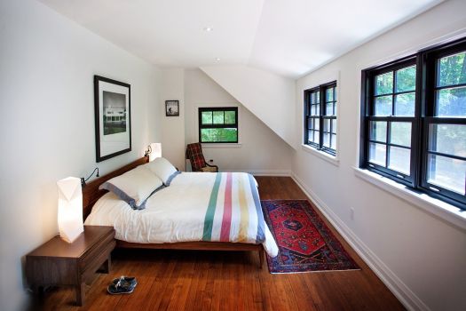 Shortly after the purchase, we found ourselves deep in the snow on a heavily treed Caledon hillside, looking at a Craftsman cottage from the Twenties. Mentally peeling off the metal siding, we could see a sturdy stucco and brick structure, in which a granite fireplace and maple floors still glimmered with potential. Due to neglect, much of the rest of the interior would go into the dumpster, but the essential volumes of space spoke to an intimate family life and the possibility of an expanded connection to the gardens around the house.