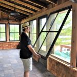 Likewise, the wraparound Veranda had served the Owners’ family very well as a combination dining room, sunroom, reading room and lounge. The Veranda looked out onto stunning views over Georgian Bay. However, it lacked wind and rain protection, so we swapped the old bug screens for new screened windows, an improvement that would make the interior much more comfortable. The awning windows are generous in size. They hinge up and hook onto the ceiling when not in use.