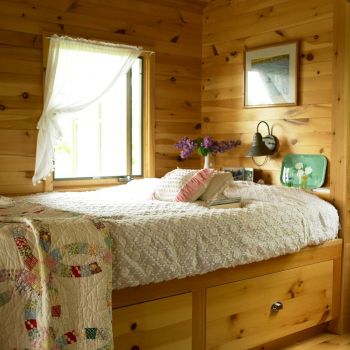 At the outset of work, the challenge of repairing the building was daunting. The interior was stunning: floors, walls and ceilings in old-growth wood, aged to a honey colour. But the plumbing leaked, the wiring was a hazard, the floors and walls showed dryrot, and the bathrooms and Kitchen were inadequate. Our job was to preserve the best of the interior, open up the walls with new windows, and to surgically repair the interior without any sign of change. More bedrooms were needed too. We added a sleeping bunky down the shoreline, in the style of the older building.