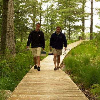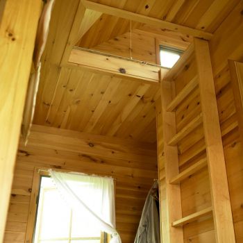 In the old cottage, floors sagged because of rot and weak structure. We inserted new wood beams and posts and finished them to match the lovely old wood.