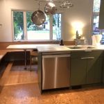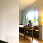 We were intrigued by the open plan to be found inside and by the beautiful landscaping of the property. Our design has been to renovate the interior and to attach a garage to the carport, forming a covered entrance. On the ground floor, we have extend the cathedral ceiling across the Kitchen and Dining Room. By peeling open the outside brickwork, new windows have been introduced to seize on the wonderful panoramas of the property. Cabinetwork takes its cues from the Nineteen Sixties, and finishes such as cork flooring romp across the open plan. We base our design simply on great views, good natural light and an energy retrofit consistent with our strategy for older homes.