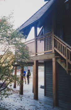 Only after the boathouse roof was complete could the beauty of the cedar shingles be really appreciated. The second floor deck can be seen here in the foreground, supported on solid hemlock columns.